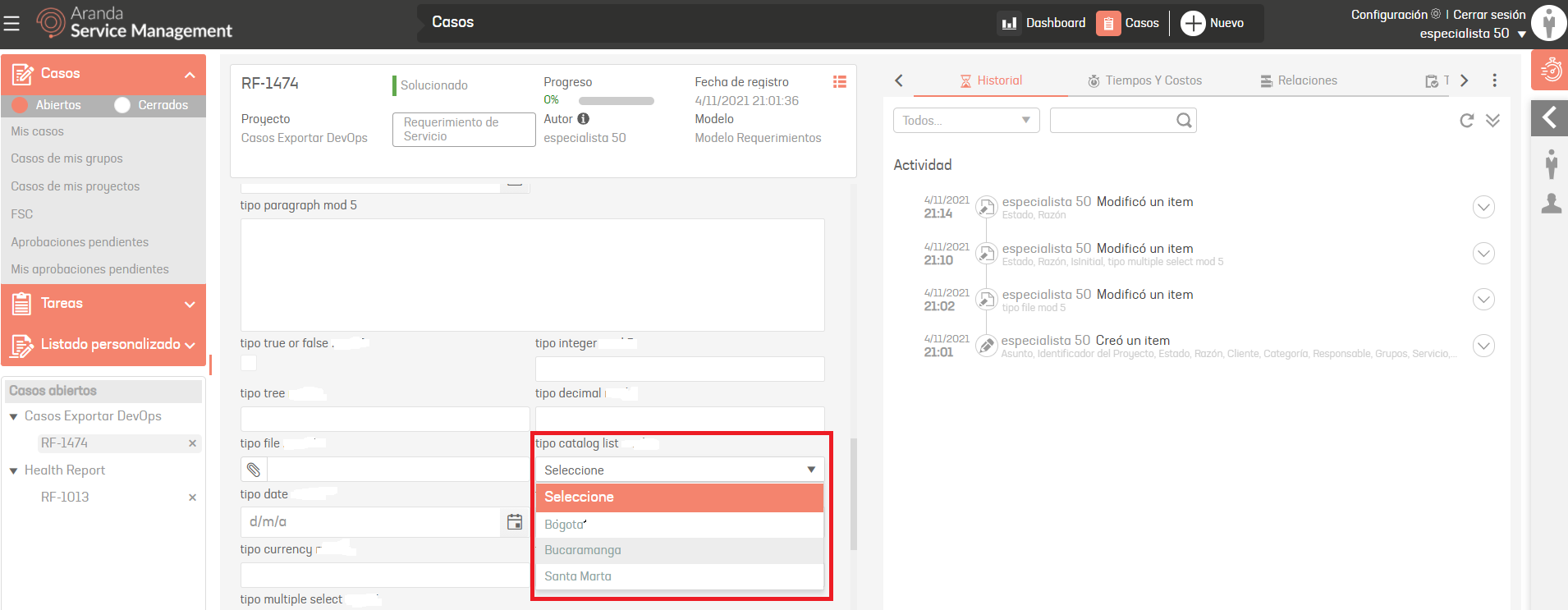 O en su defecto el id de ese valor, por ejemplo “Santa Marta” o “113” (id del valor).