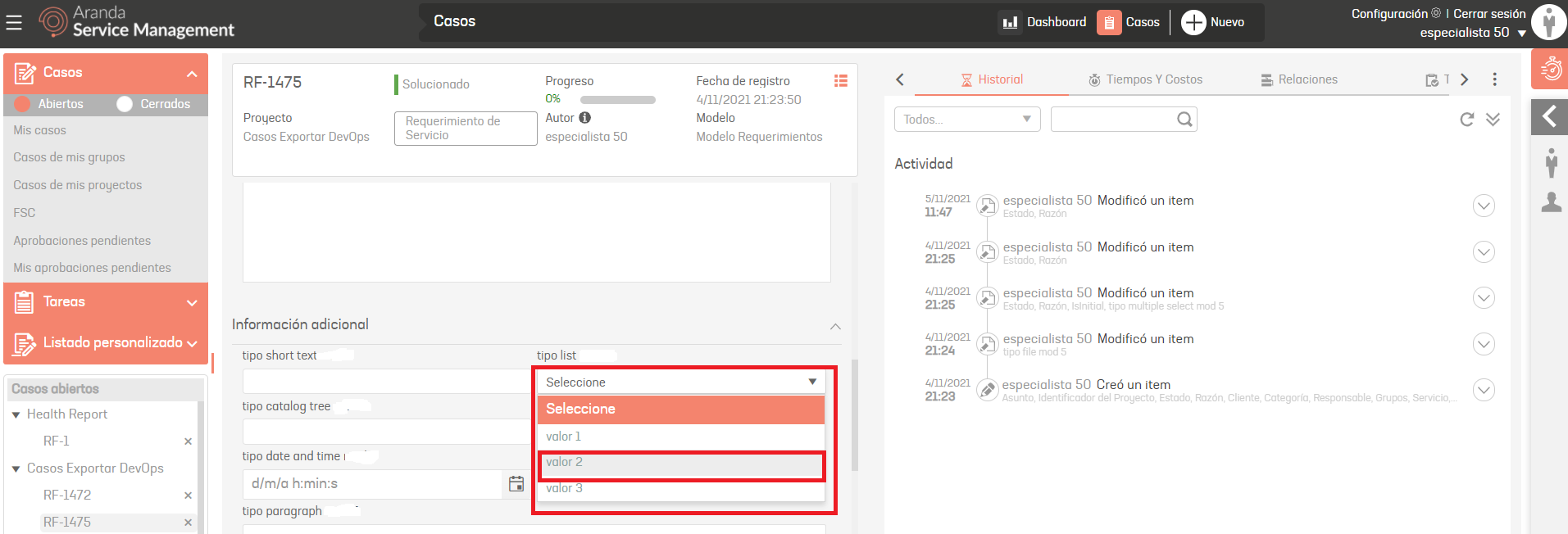 Escriba el valor de la lista como se encuentra en ASMS: