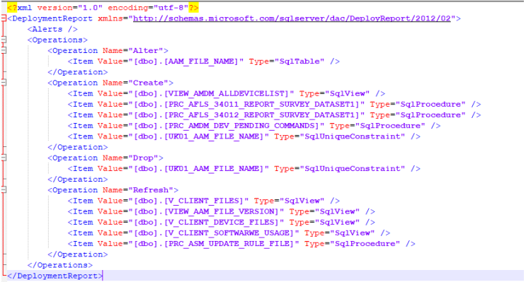 - Using the sqlpackage.exe verify that the database has no differences at the schema level. For additional information