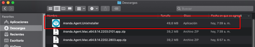 1. To install the Aranda DEVICE MANAGEMENT ADM agent via command line, run the following statement from a MacOS shell: