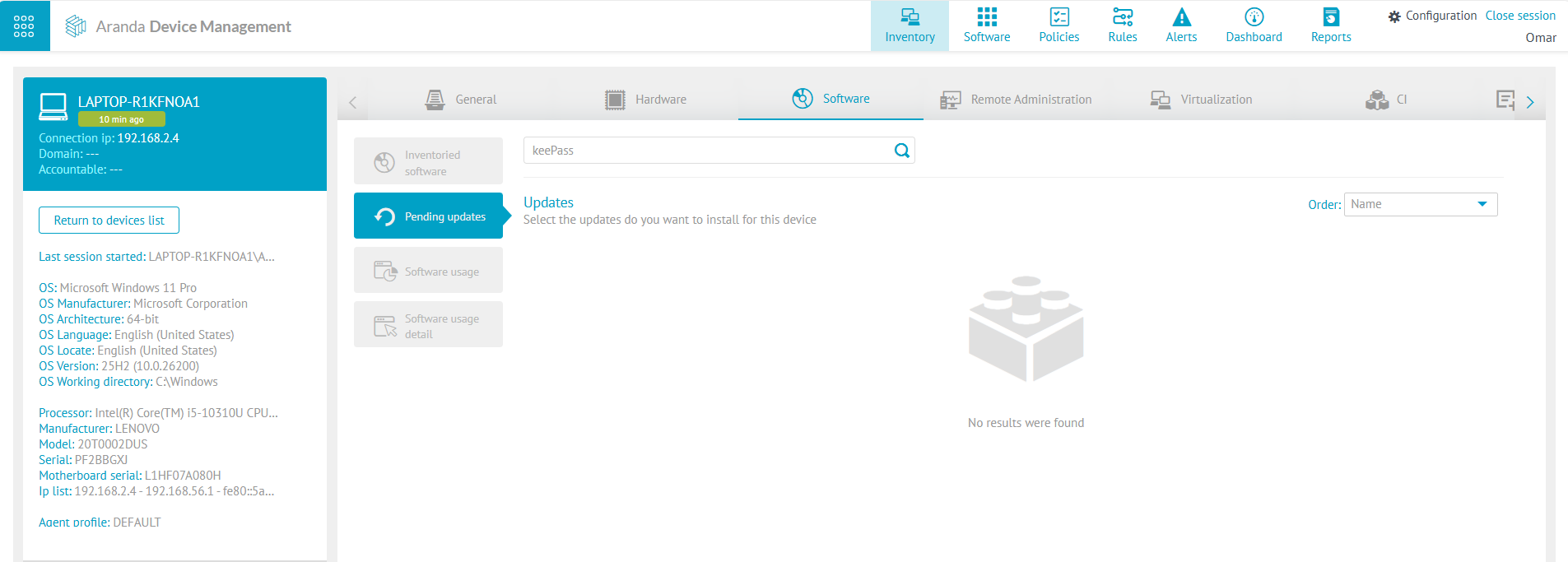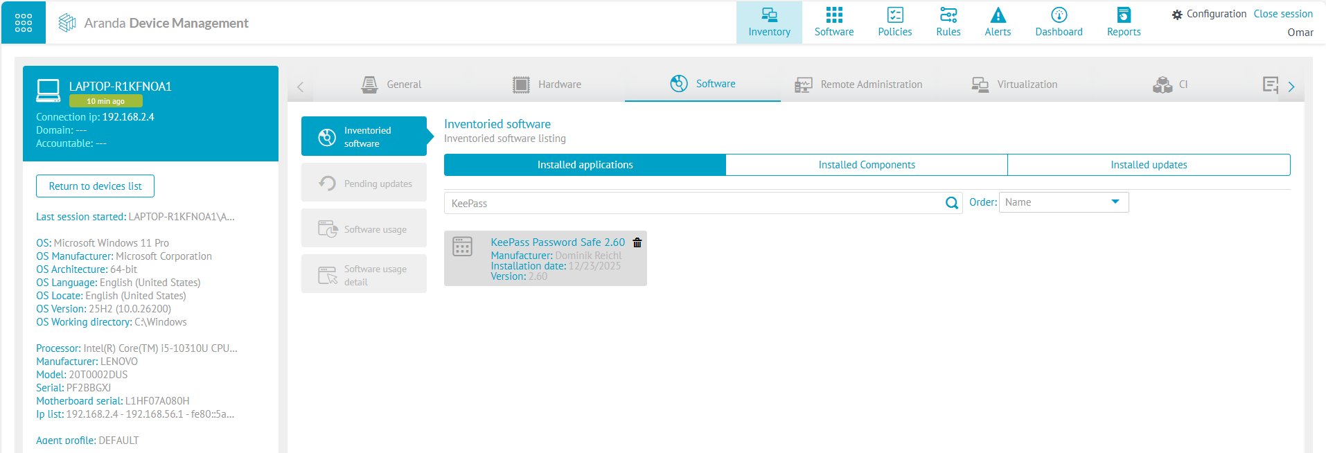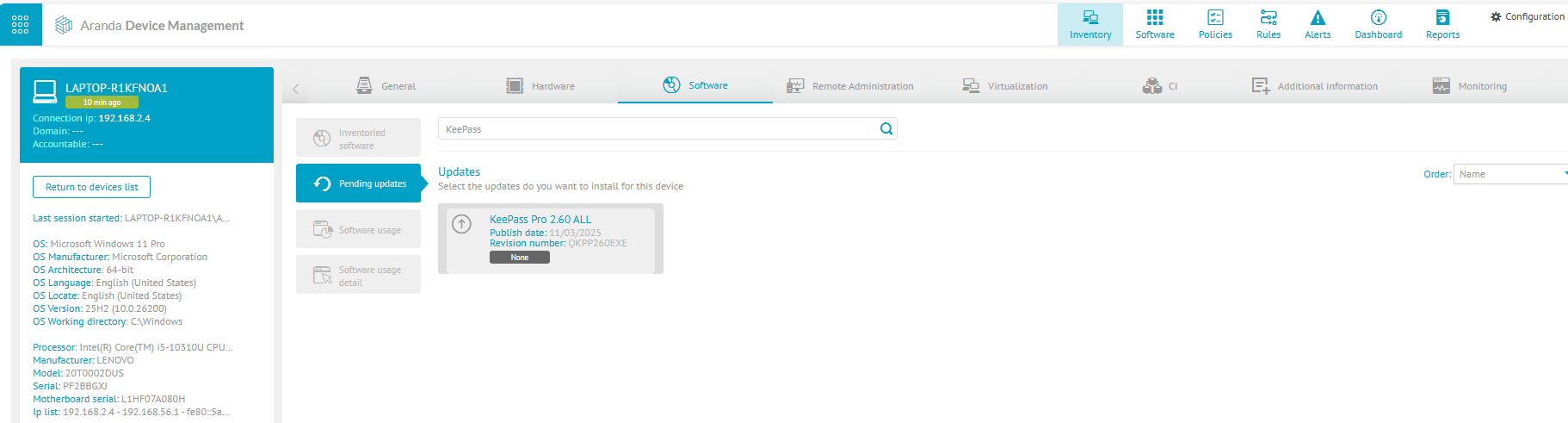 7. Verifique no dispositivo que a versão do KeePass está instalada e que a atualização não está mais disponível.