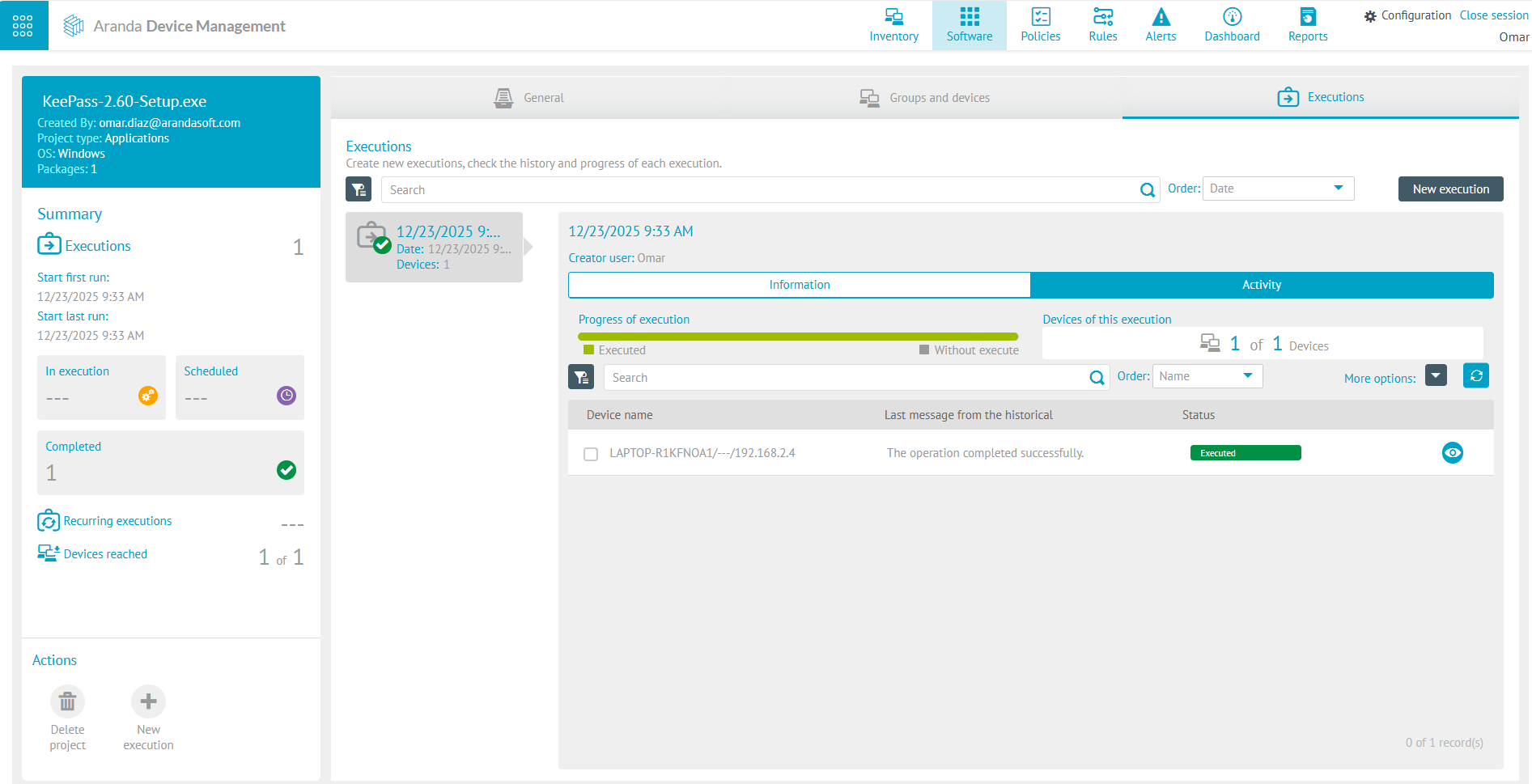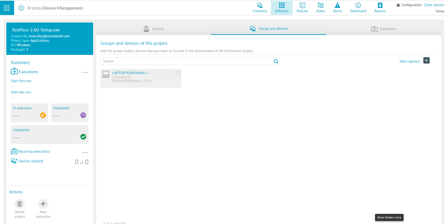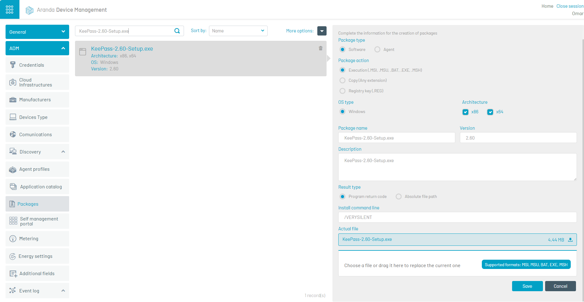 3. Carregue o executável como um pacote de software, adicionando a linha de comando de instalação /MUITO SILENCIOSO.