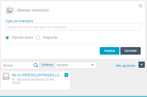 1. Ao selecionar o Obter inventário Você pode fazer uma solicitação de inventário para todos os dispositivos nos quais o hardware selecionado está instalado.