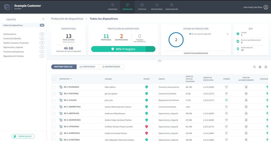 You can use the Devices sidebar to filter the Protection page so that it only shows information about devices on certain Devices. For example, you can configure the Protection page to only display information for a “Finance” team and a “Human resources” team.