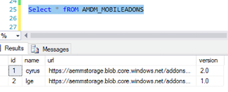 - When the tool obtains a connection with the unified remote storage account, it returns a list of addons, which will store and update the local cache of the list of addons, we can validate it in table AMDM_MOBILEADON, this table will only save the latest version of the addons.