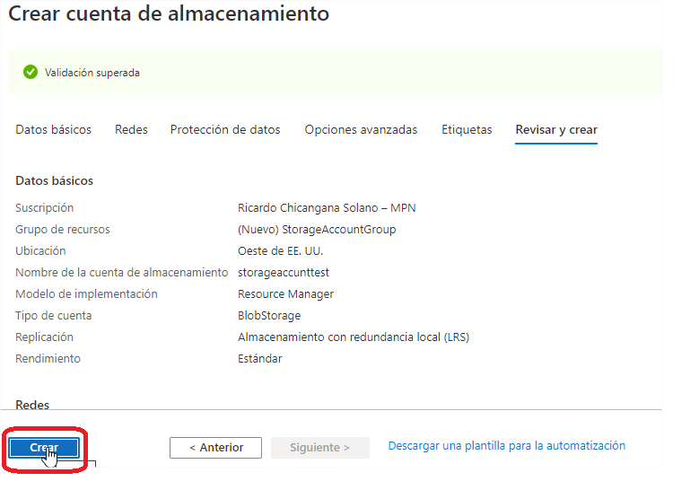 - Subsequently, paste the URI obtained in Azure, then click on the “Validate” button to proceed with the respective validation of the entered url and the upload of the data that can be extracted from the file uploaded to the url.