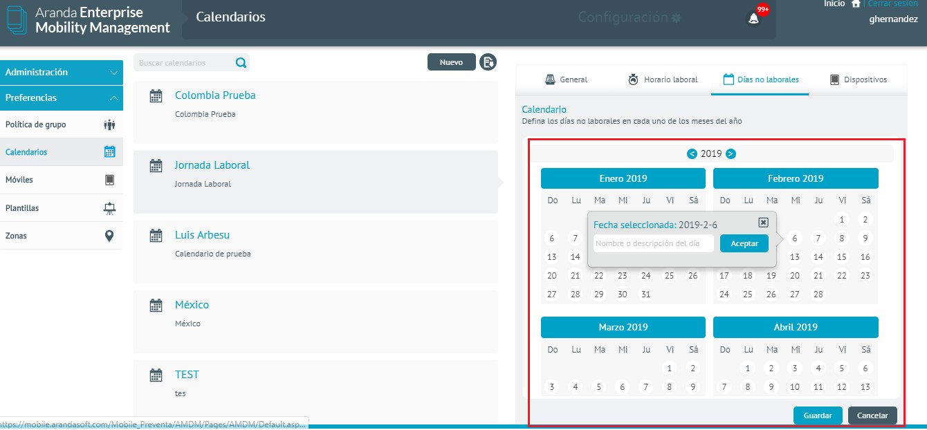 To configure the days on which you do not work throughout the year, click on the option Non-working days.