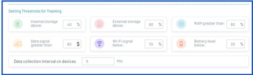 Thresholds are minimum or maximum caps that allow determining whether a device is at risk or not, according to the reported data. These thresholds tell the administrator which devices exceed these percentages and which require corrective or preventive actions, as the case may be.