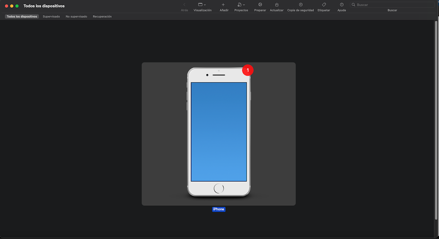 This guide explains how to manually use the Apple Configurator 2 program from a Mac, connecting the device via its USB cable to the computer. Select the device in the Apple Configurator and select the Prepare option.