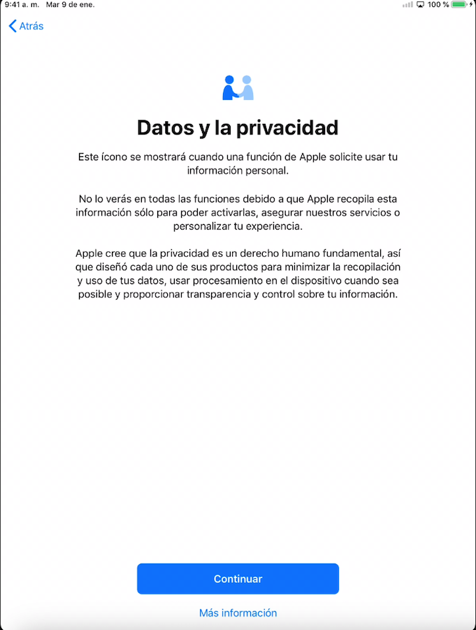 Perform the WiFi settings -> Select from the next option -> Data and Privacy will be displayed, select the Continue button.