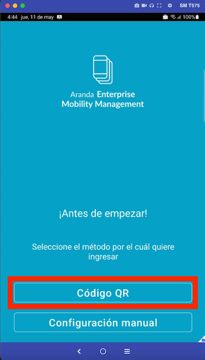 The application uses the device’s camera to capture the code, it is automatically detected, after which the application captures the code information, performs the validation of the server and the domain and leaves the user in view to enter the corresponding credentials (username and password).