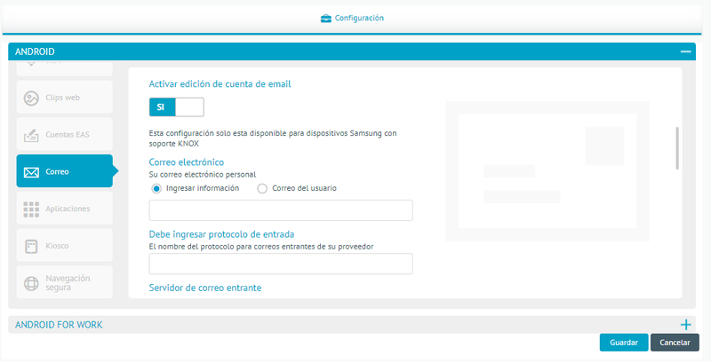 Essa configuração está disponível apenas para dispositivos Samsung com suporte a KNOX