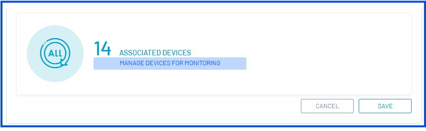 4. Para editar a associação do dispositivo, na Exibição de detalhes do status do dispositivo no Console de configuração do AEMM, selecione o ícone Status do dispositivo, clique no ícone Gerenciar dispositivos para monitoramento e na janela Associar dispositivos Você pode executar as seguintes ações: