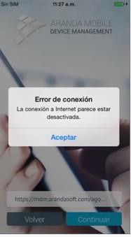 O aplicativo apresenta uma mensagem de erro para baixar o perfil (aplica-se apenas a dispositivos iOS).