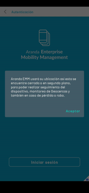 Ao entrar no aplicativo ArandaEMM, o método de vinculação ao console AEMM será solicitado