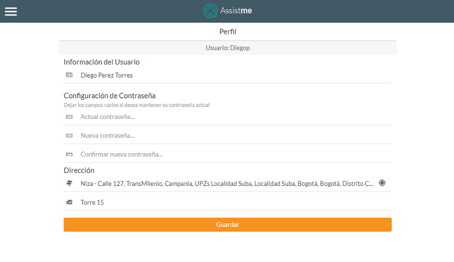 After making the respective changes, it is necessary to click on the Save to register correctly. (The respective validations of the password or obligatory nature will be carried out if the data is not correct)