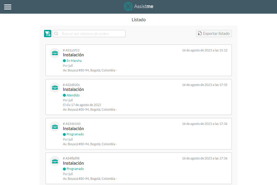Este módulo apresenta a informação das encomendas criadas pelo cliente, permitindo o acompanhamento dos serviços solicitados. Na lista de solicitações, são exibidas as informações de Número do Pedido, Serviço, Estado, Especialista Atribuído, Endereço e Data de Criação.