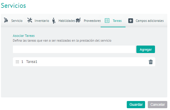 ⚐ Note: This task template will be reflected in the creation of a work order that the service has. When you save the work order with the task template, those tasks become tasks to be performed.