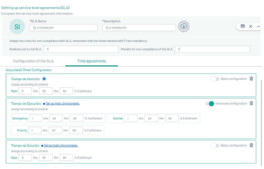 | Custo relacionado ao SLA: | Esta opção permite definir o custo relacionado à execução do SLA. |