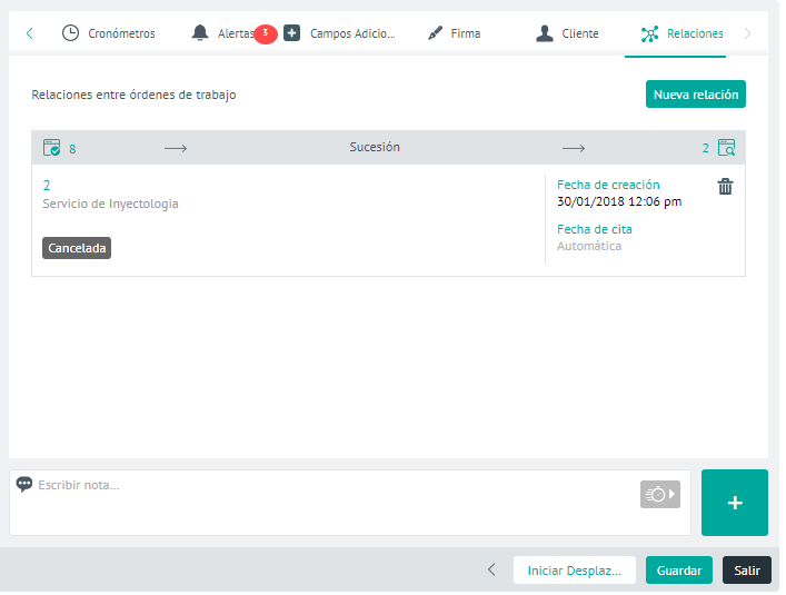 - Sucessão: Isso significa que é necessário atender a outra ordem de serviço antes de atender à ordem em que o relacionamento está sendo feito.