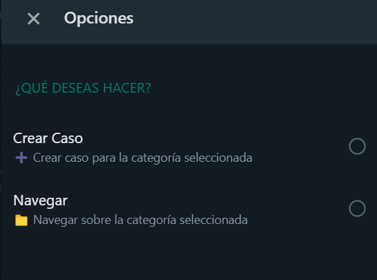 Cancel: If you decide not to proceed with the case creation, clicking the bot will automatically redirect you to the start.