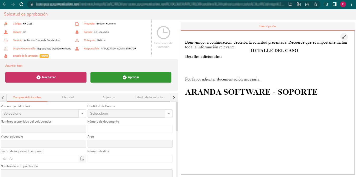 6. Selecione o ícone Votar (se você tiver um modelo personalizado) ou o link gerado, para ser redirecionado para a página de gerenciamento de aprovação apropriada.