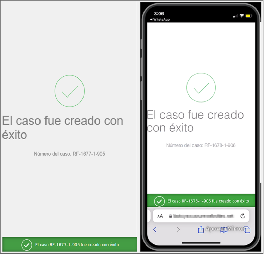 1 The confirmation message must match the one configured when creating the custom template - Create Case. View Template Creation - Create Case.