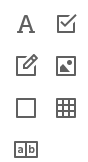 | Comum | Esse agrupamento reúne controles de layout, como: Rótulos, caixa de seleção, rich text, caixa de imagem, painel, tabela e caracteres de combinação. | ![]() |