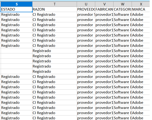Las dos primeras columnas se llaman Estado y Razón. En los primeros registros el dato Registro se muestra correctamente en la columna de Estados sin embargo en algún punto de la exportación, el dato refleja una transposición y aparece en la columna de Razón.