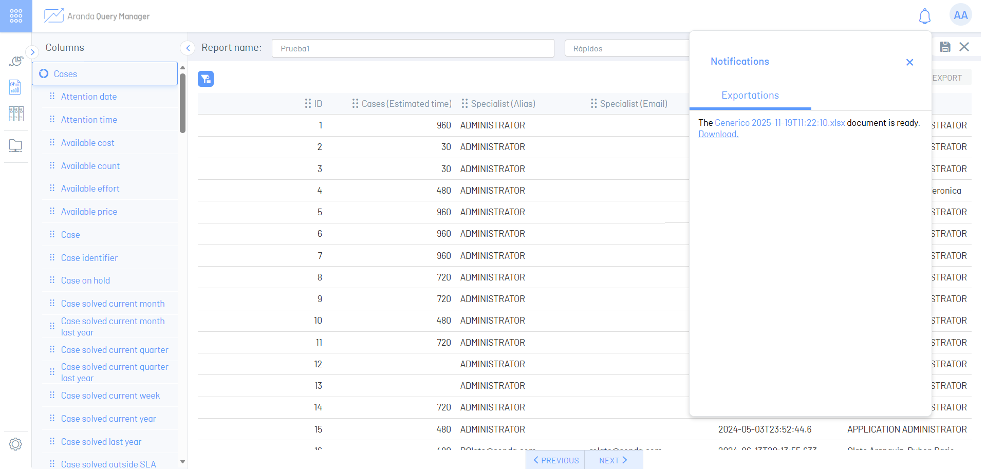 Um relatório no Aranda QUERY MANAGER é uma ferramenta que permite gerar e gerenciar relatórios consolidados com informações excelentes sobre seus processos de negócios nas ferramentas da Aranda Software.