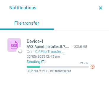 1. Quaisquer transferências com falha ou em andamento podem ser canceladas. Para cancelar, clique no ícone de fechamento à direita da barra de progresso da transferência.