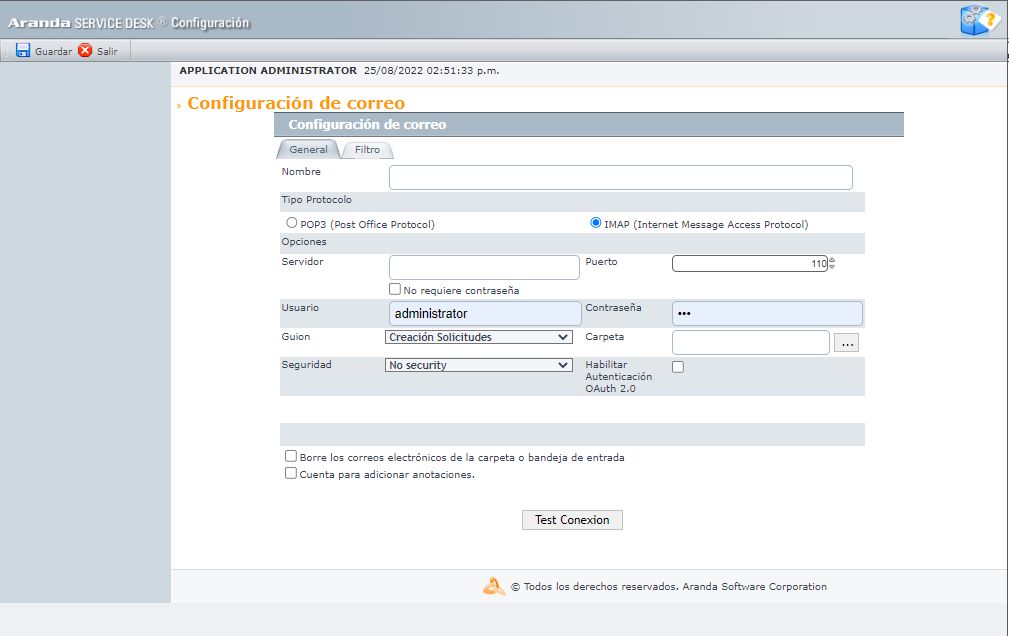 Adjustments are made in the Web Configuration Console (BASDK) to support authentication settings Modern (OAuth 2.0) in the mail settings (Settings/Configure Mail) and in Case Creator (Configuration / Case Creator ‘Caso Mail’), the configuration options will be presented as follows: