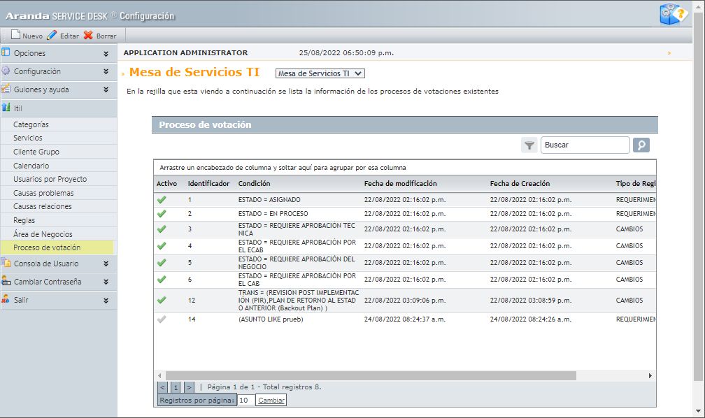 É feita modificação na configuração do processo de votação no console web de configuração (BASDK)”, agora a configuração deve ser feita na opção (Itil / Processo de votação). Para configurar corretamente esse novo processo de votação, você deve: