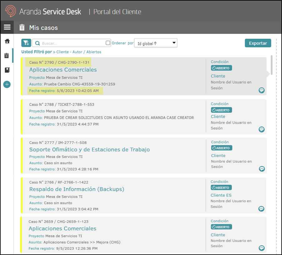 Uma nova opção foi adicionada ao menu suspenso “Classificar por” que permite classificar casos com base no ID global do caso.