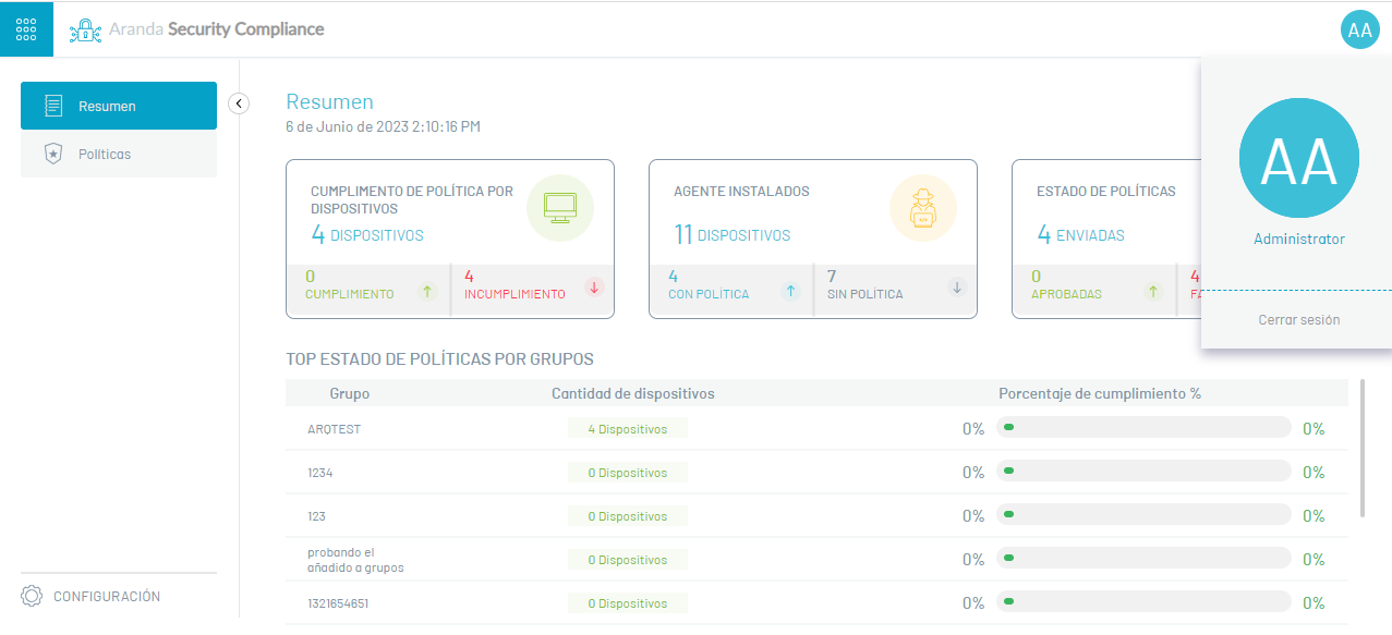 1. Enter the url of the Aranda Security Compliance ASEC web console.