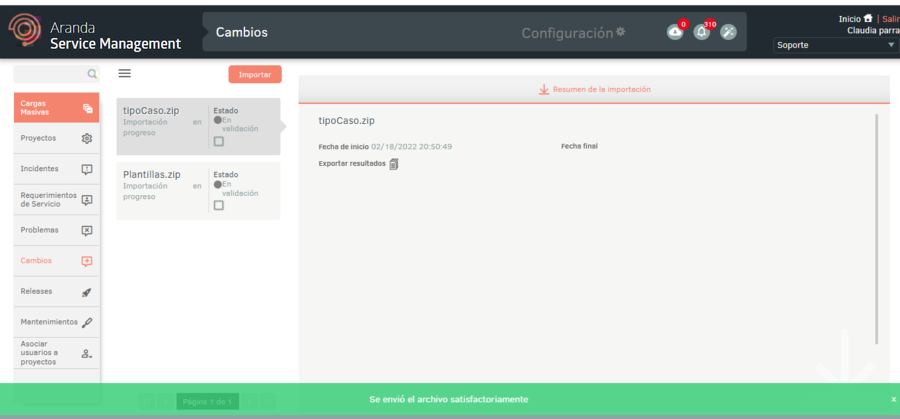 Este módulo permite que você execute o upload em massa de casos, este upload em massa é apenas para criação de casos, não para atualização.