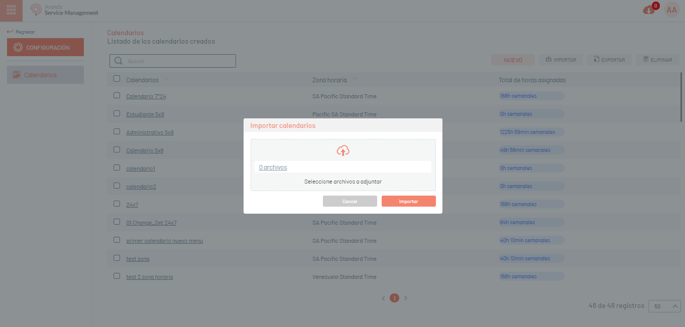 1. Assim que o formulário for preenchido, entre na Lista de calendários, selecione o botão Importação.
