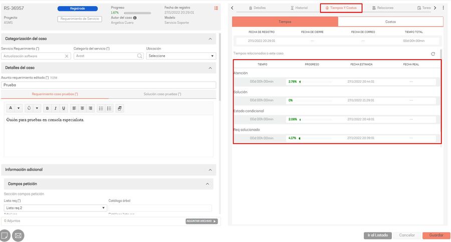 Fill in the minimum data required to save the case, after that click on “Save”: