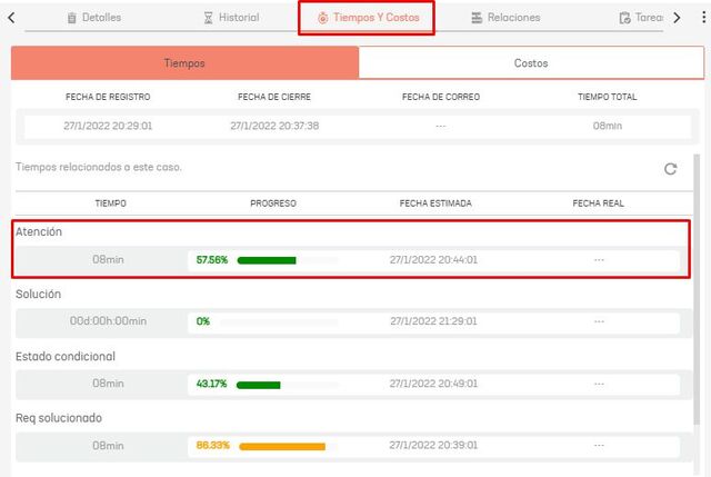 Click again on the “Time and Costs” tab, it is observed that the “Date