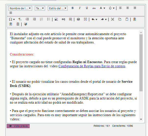 Adjustment is performed in the administration console (ASMSAdministrator). When you are creating or editing an article and click to view the preview, the content of the article is displayed in the same way as in the client and specialist consoles.