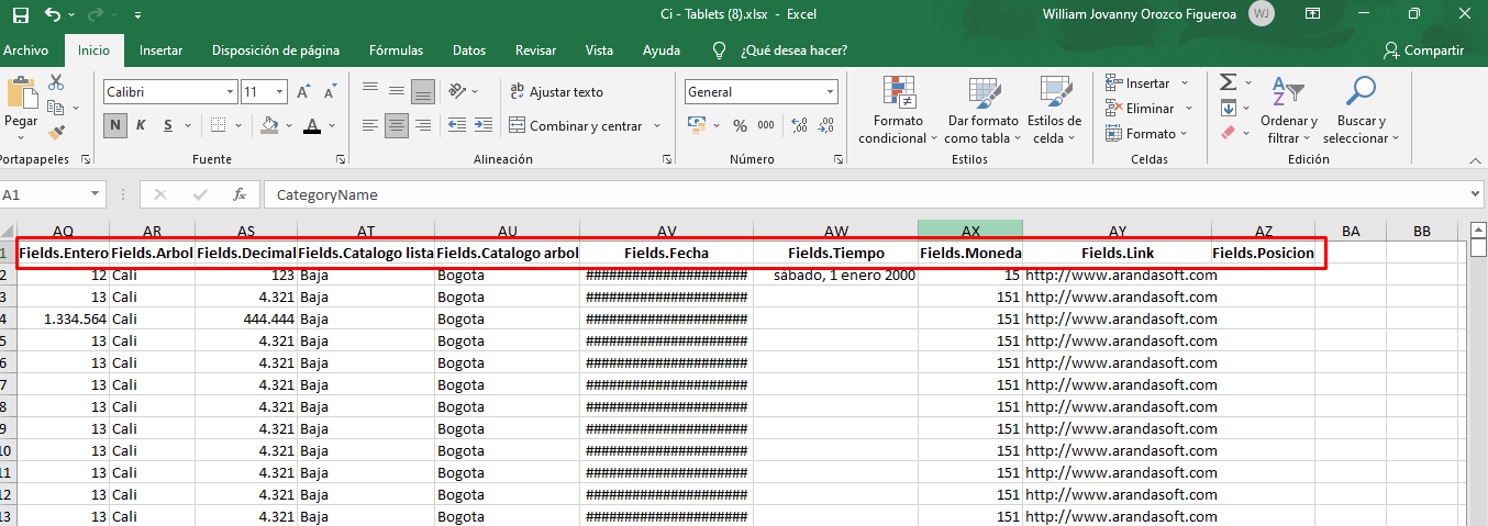 O ajuste é feito no Console de Administração (Administrador ASMS) com exportação Cis, Agora o formato é exportado com campos adicionais de acordo com a categoria.