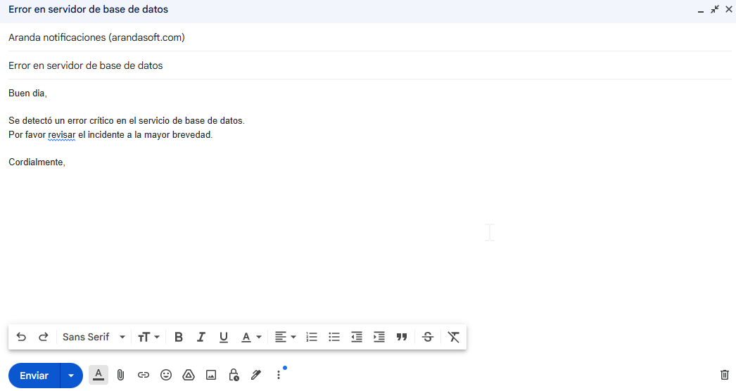 1. Compose an email addressed to the address configured for the inbound server, indicating in the subject a brief title of the problem, describing the incident in the body of the message and including the tag {RelatedCI=ExactCIname}.