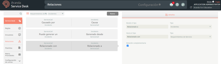 1. No Admin Console, você deve ter relacionamentos marcados como Relação complementar.