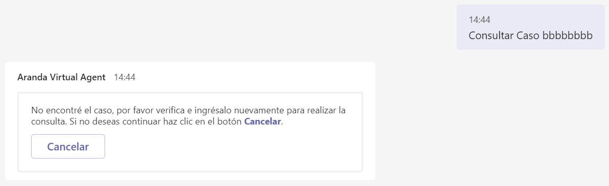 Alternatively, you can type “@Aranda Virtual Agent consult case criteria” and send the message (Ex: @Aranda Virtual Agent consult case 71).