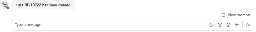 1. From the channel or chat authorized for this use, invoke the bot by typing the command “Create Case”.