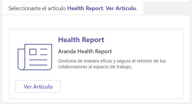 1. From the channel authorized for this use, invoke the bot by typing “@Aranda Virtual Agent”. A drop-down menu will appear where you can select the option View Articles.
