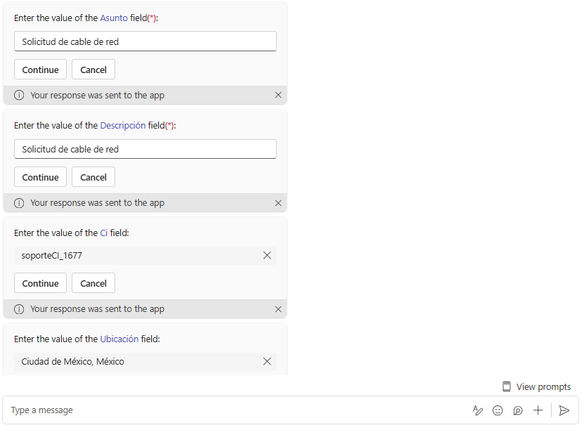 ⚐ Nota: O Aranda Virtual Agent não solicitará os campos adicionais ou de interface nos seguintes casos: