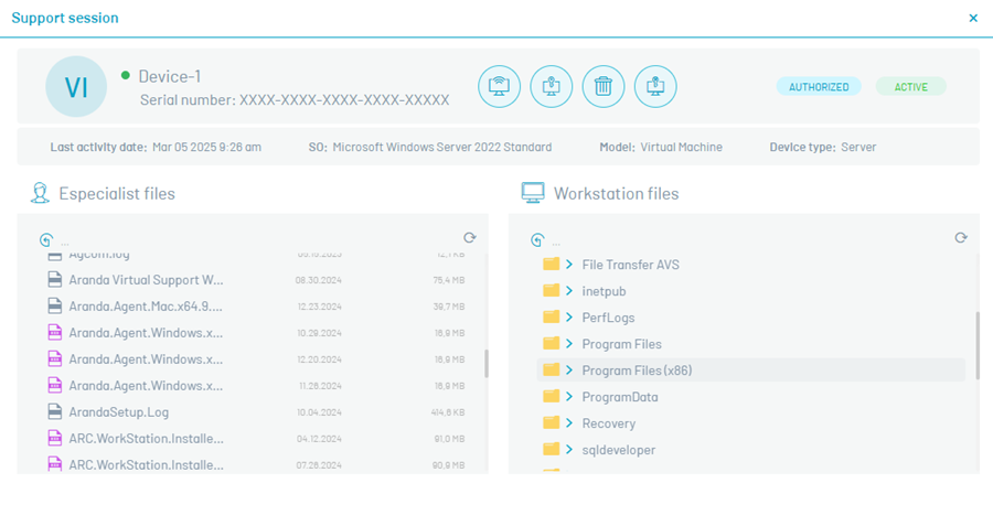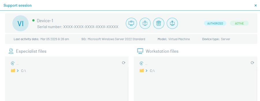 ⚐ Nota: Se durante a transferência de arquivos o especialista rejeitar a sessão de suporte, as transferências ativas serão canceladas automaticamente.