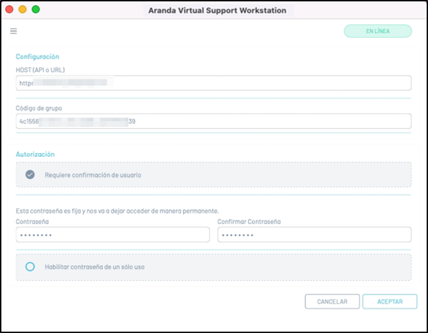 | Senha de uso único | Esta senha é feita para ser usada apenas uma vez ao autenticar a sessão de suporte, uma vez que a sessão de suporte tenha sido autorizada, a senha não será mais válida e uma nova será gerada. Uma nova senha pode ser invalidada e gerada clicando no ícone de atualização nesse campo ou clicando no botão Aceitar. |