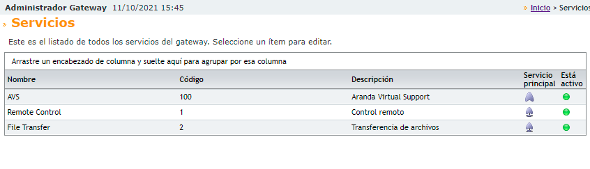 - Porta de serviço: Porta na qual o Aranda AVS Gateway será executado e para a qual os clientes de software se referirão (Consoles e Agentes).